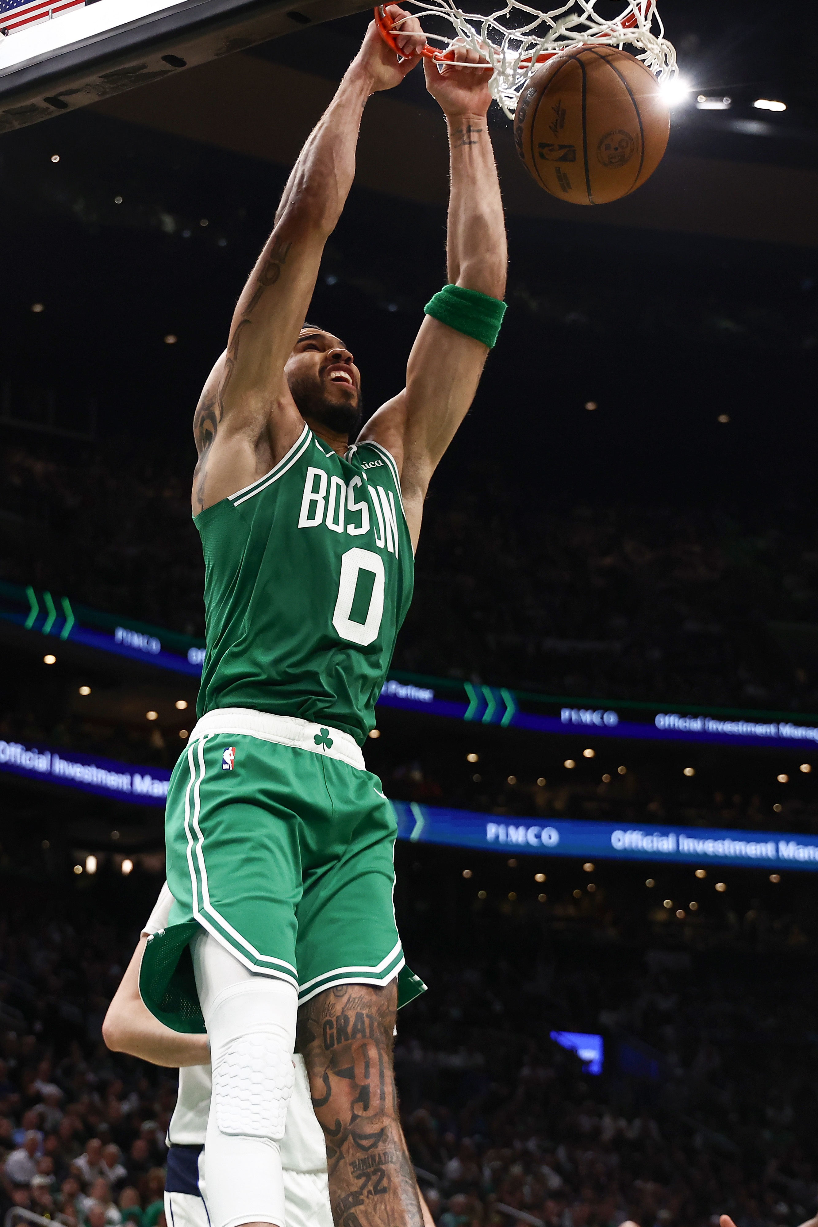 本场比赛,塔图姆首发出战32分钟,投篮19中8,三分球9中2,罚球2中2,拿到20分14篮板7助攻2抢断的全面数据,正负值+18。
